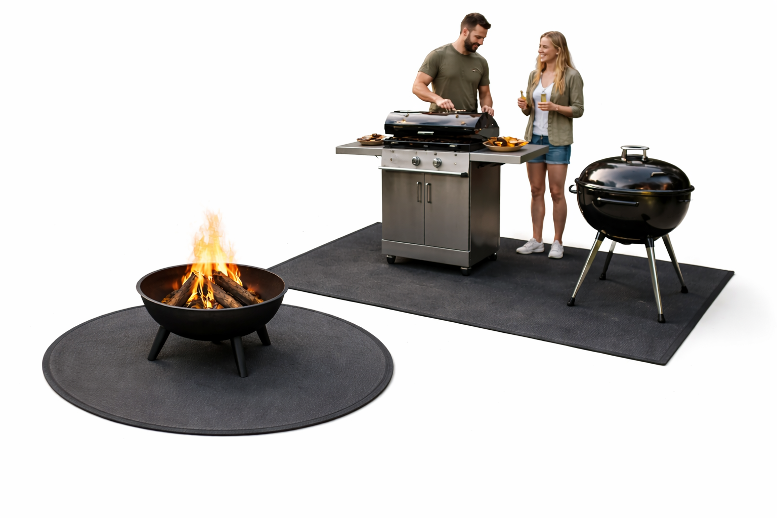 - Round + Rectangle Combo for All Fire Pit & Grill Types: Includes 1× round mat + 1× rectangle mat. Round 36″ & Rectangle 36″ × 48″, Perfect for fire pits, smokers, gas grills, charcoal grills, and patio cooking stations. No need to choose—one set fits every outdoor setup.